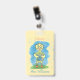 A cute yellow library hall pass badge designed for elementary school , featuring an adorable watercolor cartoon little duckling holding a book on the front and orange little duck foot prints on the back . Use the template field to personalize it with the teacher's name . Choose the type of attachment you want to (none , metal clip or lanyard) .