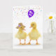 Cute yellow duckings with a purple 80th birthday balloon and party confetti on a white background.