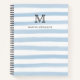 Cute Dusty Blue Watercolor Stripes Monogram Name Notebook