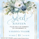 Cute Dusty Blue White Peonies Sweet 16 Invitation