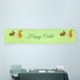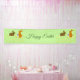 This awesome banner features a pair of cute little Easter bunnies surrounded by yellow daffodil flowers. The rabbits are brown with big ears, black eyes and fluffy white tails. One of the bunnies is holding an Easter egg with a pretty purple bow on it and is reaching out to offer it to the other bunny. The daffodils are yellow with a bright orange center.