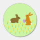 This awesome collection of Easter candy favors features a pair of cute little Easter bunnies surrounded by yellow daffodil flowers. The rabbits are brown with big ears, black eyes and fluffy white tails. One of the bunnies is holding an Easter egg with a pretty purple bow on it and is reaching out to offer it to the other bunny. The daffodils are yellow with a bright orange center.