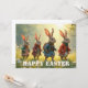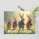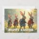 A delightful Easter scene featuring four adorable bunnies walking through a sunny spring meadow. Dressed in charming outfits, they bring warmth, joy and a playful atmosphere perfect for celebrating Easter and the beauty of the season.