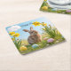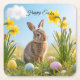 Cute Easter Bunny and Daffodil Square Paper Coaster