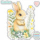 Cute Easter bunny with flowers, Easter egg and heart. Text can be personalized. Bunnies symbolize abundance, longevity and good fortune!