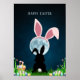 Cute Easter Bunny and Full Moon with Bunny Ears Happy Easter Poster -