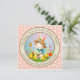 Cute Easter Bunny and Happy Spring Flowers Holiday Invitation