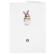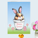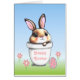 Cute Easter bunny with Easter egg and flowers Card. Text can be personalized for Easter or Birthday. Bunnies symbolize longevity, abundance and good fortune.