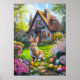 Happy Easter with this cute animals like easter bunny or baby chick. Join the easter egg hunt in spring with vibrant colors and joy, candy and a floral vintage fantasy. Cute rabbit with flowers. Cottage painting wall art.