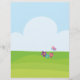 This cute Easter flyer features a girl in cute bunny suit holding Easter eggs set on a green grass with spring flowers and butterfly on blue sky and white fluffy cloud background. Easy to personalize with custom options.