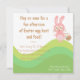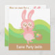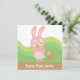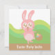 Kawaii cartoon of Easter Bunny with sparkling eyes holding a basket of eggs skipping happily away. The eggs are decorated with colorful patterns like dots, stars and lines. Green wavy hill top background. This adorable and happy design is sure to be attractive for kids and wonderful for organising that Easter egg hunt event. Invitation can be easily customised to your party details. Designed by Rusty Doodle.