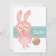 Kawaii cartoon of Easter Bunny with sparkling eyes holding a basket of eggs skipping happily away. The eggs are decorated with colorful patterns like dots, stars and lines. A blue stitch banner to add your special message and a light brown background for your party details. This adorable and happy design is sure to be attractive for kids and wonderful for organising that Easter egg hunt. Invitation can be easily customised to your party details. Designed by Rusty Doodle.