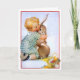 Featuring a vintage illustration of a cute child hugging a cute bunny at Easter.