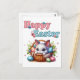 Cute Easter Bunny in Basket with Eggs and Flowers Postcard