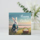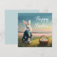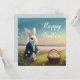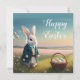 Cute Easter bunny in little blue jacket Card