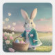 Cute Easter bunny in little blue jacket Square Sticker