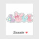 Cute and fun Easter vinyl sticker with the word Love in Spring colors and an Easter bunny.