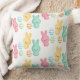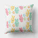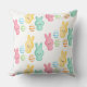 This stylish throw pillow features a classic Easter candy theme on a white background. Cute and colorful Easter bunny marshmallow candies are tiled across the pillow, with decorated eggs.