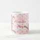 You can personalize the name on this cute bunny rabbit mug. You can also remove the text on the rabbit's belly by going into customize it and removing the graphic for the text. To change the name, use the personalize option. To remove it, or to change the font, font color, font size, or text placement, use the customize it option. If you want the bunny belly text to say something else, please message the designer "wasootch" by clicking on "contact" below the product image and we'd be happy to accommodate you. We could also change the pink accents to another color for you. This would also make a great Easter mug by changing the name to say Happy Easter perhaps.