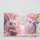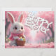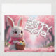 A charming Easter bunny wearing a scarf holds a basket filled with colorful eggs, surrounded by soft pink blossoms. This delightful spring scene is perfect for Easter greetings, festive designs, and seasonal decorations.