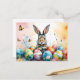 Cute Easter Bunny with Colorful Painted Eggs Postcard