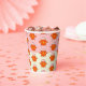 Cute Easter Chick with Eggshell Pattern Party Paper Cups. These adorable Easter paper cups feature a cute orange chick with an eggshell perched atop its head! The cheerful background is in gentle yellow and pink. Perfect for Easter celebrations, these cups are sure to bring a festive touch to your gathering.