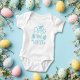 This baby bodysuit features blue text image "First Time Hunter" with Easter eggs. Perfect for the your baby's first Easter.