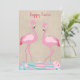 Easter special craft style design popular pink flamingo and traditional painted eggs.