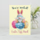 A cute, adorable watercolor illustation featuring Easter gnomes with bunny ears and colorful eggs on a pale, yellow background. Invite your family and friends to a fun-filled Easter egg hunt and brunch with this flat invitation card. There is space on the back of the card to add your party details.