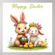 Cute Easter Lamb & Bunny | Chicks & Spring Flowers Poster