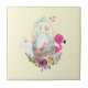 Cute Egg, Pink Flamingo & Bunny, Watercolor Ceramic Tile