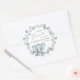 Cute sticker for your baby boy shower invitations, thank you cards and party favors featuring "A Sweet Little Peanut Is On His Way" in a mix of simple typography and a stylish script with a heart swash and a watercolor of a blue baby elephant on a wreath of sage green eucalyptus greenery. Personalize with the mother-to-be's name and the shower date.