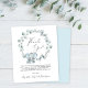Cute baby boy shower thank you featuring "Thank You" in a stylish script with a heart swash and a watercolor of a blue baby elephant in a wreath of eucalyptus greenery. Personalize your thank you message and add your name(s) in a signature script, or leave blank for a handwritten note.