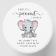 Cute mini candles for your baby girl shower party favors with "A Sweet Little Peanut Is On Her Way" written in a mixture of soft grey typography and a stylish script, and a pastel pink watercolor of a baby elephant. Personalize the mother-to-be's name and shower date in simple grey typography.