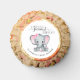 Cute party favor candy for your baby girl shower with "A Sweet Little Peanut Is On Her Way" written in a mixture of soft grey typography and a stylish script, and a pastel pink watercolor of a baby elephant. Personalize the mother-to-be's name in simple grey typography.