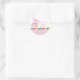 Great baby shower sticker featuring a pink elephant sitting atop a bed of flowers. Sweet as can be. Great way to announce your little darling's baby shower.