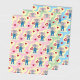 Adorable set of three flat wrapping paper sheets with a sweet cartoon elephant and heart pattern . One is pink , one is green and one is light blue . Perfect to wrap baby shower or Valentine's Day gifts .