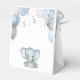 This adorable baby shower favor box features blue and gray baby boy elephant with balloons and confetti. Easily customized for your event by clicking personalize. Perfect for your party guests!
