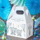 This adorable favor box features blue and gray boy elephants with balloons and confetti. Sides feature a silver cross. Easily customized for your event by clicking personalize. Perfect for your party guests!