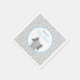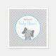 Modern gray and light pastel blue elephant themed baby shower paper napkins. Perfect for a little boy baby shower. Easily personalize!