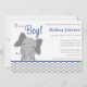 Cute Elephant Chevron Navy Blue Baby Shower Invitation
