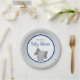 Modern gray and navy blue elephant themed baby shower paper plates. Perfect for a little boy baby shower. Easily personalize!