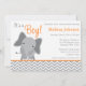 Cute Elephant Chevron Orange Baby Shower Invitation
