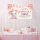 Cute pink elephant girl 1st birthday party banner but can be customized to any age! Design features an adorable watercolor baby elephant wearing a party hat, fun bunting decoration and pretty pink florals. Simply personalize by customizing the name, age and date.