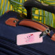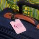 Luggage Tag with design with an illustration of a pink elephant with a white mouse illustrated by Radka Kavalcova / MaxiHarmony