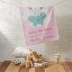 Cute Elephant Personalised Pink Birth Stats Baby Blanket