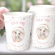 Cute paper cups with a baby elephant girl and flowers, soft pastel pink, white and beige ''golden'' colors, beautiful, cute and elegant design that is so adorable for a baby girl's baby shower. Easily personalize the text. Great for a lovely baby girl shower party all year round. - Kate Eden Art