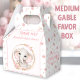 Cute medium sized gable favor box with a baby elephant girl and flowers, soft pastel pink and beige ''golden'' colors, beautiful, cute and elegant design that is so adorable for a baby girl's baby shower. You can choose from 3 sizes of these gable favor boxes. Easily personalize the text. Great for a lovely baby girl shower party all year round. - Kate Eden Art
