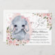 Cute Elephant Pink Rose Girl Baby Shower Invitation
