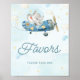 Cute Elephant Plane Adventure Blue Favors Sign